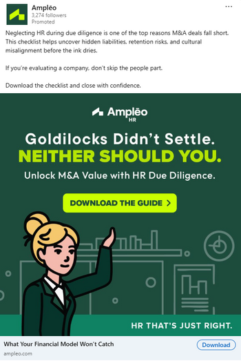 A Goldilocks-inspired campaign repositioning Amplēo’s fractional HR as the “just right” solution for growing businesses.